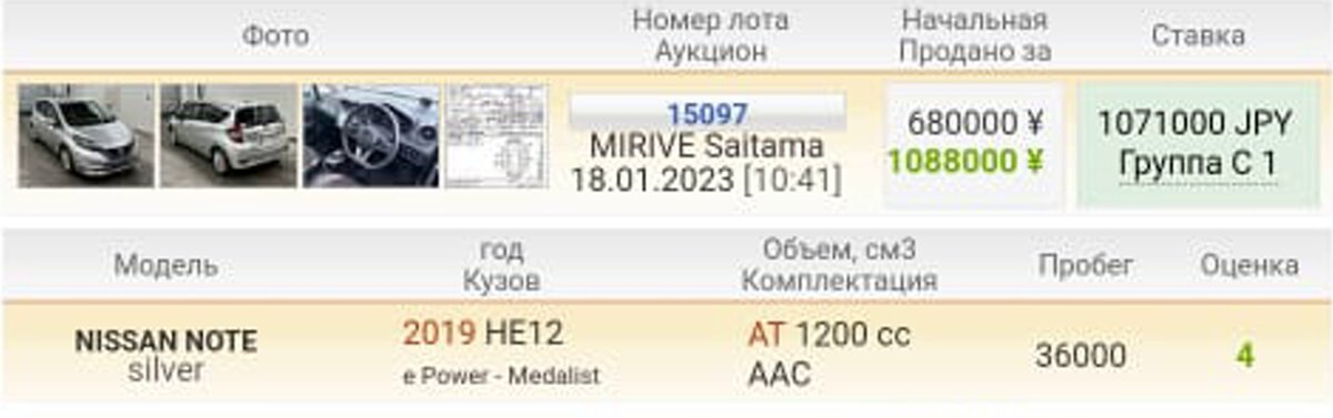 Здравствуйте, дорогие друзья. 18 декабря купили на продажу Nissan Note e-POWER в комплектации Medalist. В декабре 2022 года курсы валют выросли и стало непонятно дешевле сейчас покупать или дороже автомобили с аукционов Японии чем год назад или летом 2022 года. Что бы это понять нужно брать конкретную модель и сравнивать её стоимость во Владивостоке. 12 августа мы выкладывали видео ролик под названием: «Цена Nissan Note e-Power с аукционов Японии в феврале и августе 2022.» Можно перейти по ссылке и узнать какая стоимость машин была в разные периоды 2022 года https://dzen.ru/video/watch/62f60bd7a9fe32189b8409e3 Note e-POWER Medalist 2019 года купили с аукционной оценкой 4 балла и пробегом 36 000 километров. Ставка сыграла на 1 088 000 иен. Инвойс выставили на 1 443 000 иен. Его мы пока не оплатили, планируем на следующей неделе. Если кому-то сильно понравился этот Note e-POWER, то можем заключить агентский договор и привезти его под Вас с обычной комиссией компании 50 000 рублей. Итак,