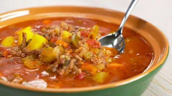 В меру пикантный, аппетитный, сытный и согревающий зимний суп. С овощами и кусочками рубленного мяса. Получается очень вкусно, быстро и без особых хлопот. Время приготовления: 50 минут Количество порций: 8 Калорийность: 76 kCal Ингредиенты Как приготовить зимний мясной суп