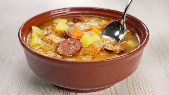 Капустняк готовят не только в Польше, он не менее популярен в Украине и в Словакии, однако родиной этого очень вкусного супа принято считать именно Польшу. Особенность этого рецепта, прежде всего, в том, что в нем используются сразу два вида белокочанной капусты - свежая и квашеная и конечно, мясные колбасы. И если вы любитель вкусных супов, этот рецепт для вас. Время приготовления: 45 минут Количество порций: 7 Калорийность: 152 kCal Ингредиенты Как приготовить капустняк по-польски