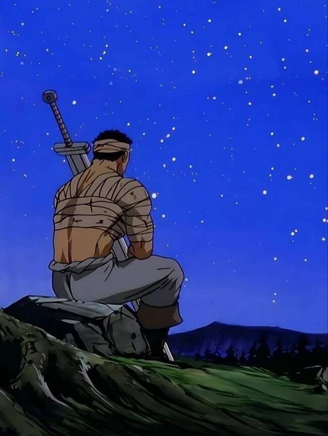 Просмотренное мной аниме Берсерк до сих пор производит на меня впечатления и будоражит сознание. Меня восхищают главные герои и события, произошедшие с ними. Я бы хотел увидеть полную историю Гриффита. Но история рассказана от лица Гатса, и встреча с Гриффитом - это встреча с уже состоявшимся персонажем. Не удивительно, что Гриффит перетягивает на себя внимание, практические становясь главным героем. Гатс даже немного отходит на второй план на фоне состоявшейся и яркой личности. Ведь в это время он только начинает анализировать и понимать себя и мир. Но по мере философского развития его роль главного героя возвращается. Он не сгорел в общем костре Гриффита, а смог отделить, зажечь свой огонь. Меня в какой-то мере восхищает преданности Белого Сокола своей мечте, но в то же время и пугает эта маниакальная страсть. Он готов пожертвовать всем, если этого требует кратчайший путь. Гатс же в этом проще. Никаких лёгких путей (и тактических наступлений в отрицательном направлении). Мир берсерка