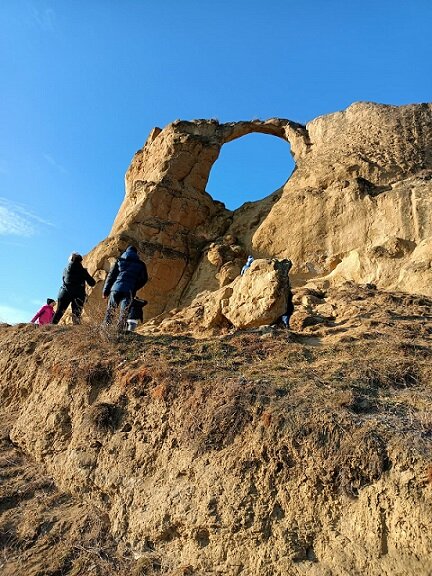 Пишу, наконец, заключительную часть рассказа про мою экскурсию по окрестностям Кисловодска. Первую часть можно прочитать здесь, а вторую - здесь. Итак, осталось рассказать про ещё две остановки на нашем пути. Одна из них называлась гора Кольцо. Своё название она получила из-за необычной формы. С течением времени скальные породы выветрились и образовали сквозное отверстие. По местной легенде, чтобы стать непобедимым в бою воину нужно было в полном вооружении проскакать сквозь это кольцо. А вот возлюбленным проходить через него вместе не рекомендуется, это сулит расставание. В нашем автобусе были пассажиры с детьми, и я слышала, как чей-то ребенок воспринял это предупреждение необычайно серьезно и уговаривал родителей вообще не ходить к горе, а то вдруг они расстанутся. Надо сказать, что к этой достопримечательности ведёт довольно крутой подъем. И хотя наша экскурсовод показала нам максимально пологую дорогу, мне всё равно показалось тяжеловато. Наверное, я очень нетренированная:) Зато