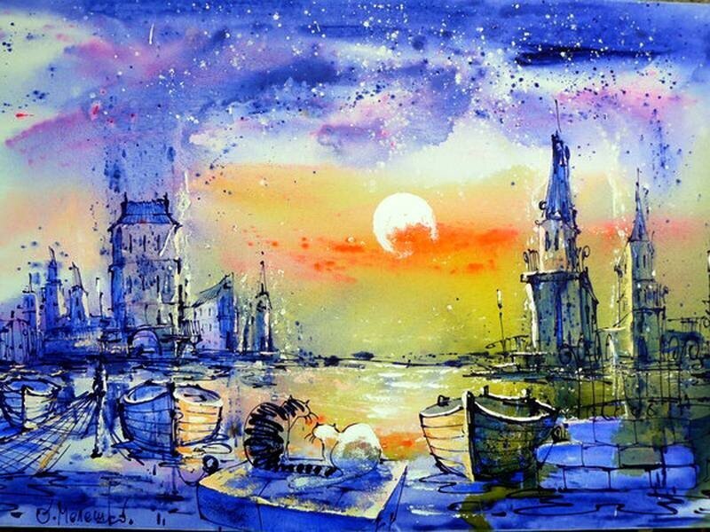 Художник Олег Мелешко. Лунная ночь - время кошек