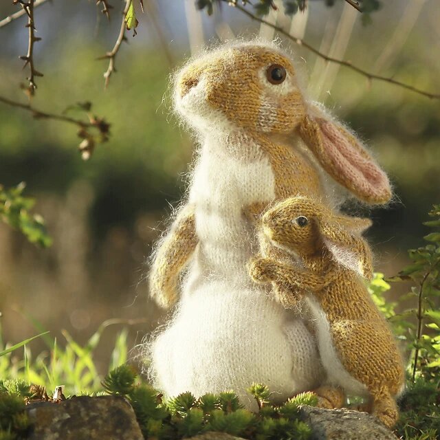 Предлагаю вам полюбоваться очередными мягкими вязанными игрушками, которые положим в нашу копилку для будущего вязания. Итак... 1. Маленький и большой заяц. Два очаровательных, золотистых зайца, максимально похожих на настоящих. Высота большого зайца — 31 сантиметр, маленького — 16 сантиметров. Чудный тандем для поднятия настроения. 2. Крот в безразмерной жилетке. Ещё одна зверушка в старомодной одежде. Обворожительный крот в жилетке over–size и пенсне. Высота игрушки 10 сантиметров. Смотрится мило и лаконично. 3. Маленький утёнок. Приводящий в умиление трогательный утёнок. Высота игрушки 18 сантиметров. Выглядит недотрогой, который растает в тепле ваших рук.