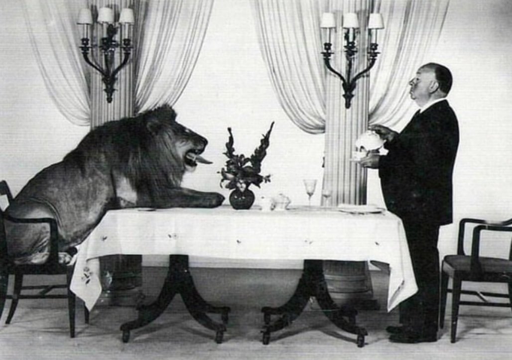 Действительно. Как много интересного, необыкновенного может запечатлеть объектив фотоаппарата! Главное, попасть вовремя и удачно снять удивительный сюжет из жизни. Альфред Хичкок, в паузах съёмки, подаёт чашку чая льву, который снимается в фирменной заставке киноконцерна «Metro Goldwyn Mayer». Зверь только при виде любимого напитка издавал тот рык, который устраивал режиссёра. Глянув впервые на это изображение, можно предположить, что это какой-то типаж нелепого привидения из фильмов-ужастиков. В действительности – это защитный плащ от ультрафиолетового агрессивного освещения (воздействия) на людей. Эскалация атомного вооружения порождает новые виды смертельно опасной продукции. В то же время, атомщики не лишены чувства прекрасного и зарегистрировали заявку на конкурс красавиц – «Атомная бомба». Но, пока официально такой парадиз в истории ещё не проводился. Сталин, грозный «Отец народов», в быту был обыкновенным человеком. Начальник его личной охраны Власик Н.И. сделал уникальный снимо