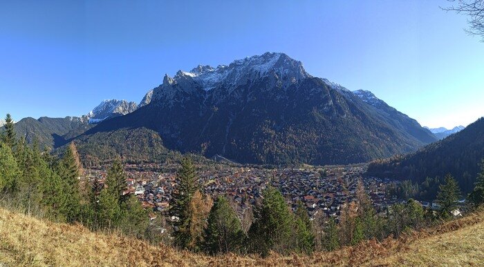 На самом юге верхней Баварии есть вот такой вот тихий городок. Ни туристов, ни гонщиков, ни сирен - роскошь по меркам Германии. Вот прямо в этой "чаше" и лежит город. Полно скамеек, чтоб посидеть на ветерке и отключиться от всего. Я, конечно, могу только гадать, но мне кажется, люди которые тут живут очень счастливы. Тут банально пить утром кофе, сидя на балконе, это уже просто сказка какая-то! Парикмахерская. Дом и пузатый повар. Красивее расписанной кирхи я ещё не видел! Браво художнику за большой труд! Матиас Клотц - основоположник производства скрипок в Mittenwald. Здесь как ни в какой другой альпийской деревне, очень много расписанных домиков. Ещё одна редкость на фото - ясное небо. Не зря на флаге Баварии голубой и белый цвет. Кстати, раз о флаге пошёл разговор. Если кто не знал, на эмблеме BMW (баварский моторный завод) как раз таки эти цвета. И где-то срели всего этого спряталась машина почтальона. Ещё наткнулся на такую самоделку. Решил мужик проблему - и вода в двор не течёт,