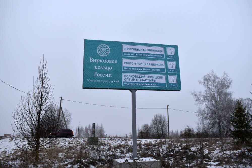 Два билборда на северной и южной окраинах Болхова: как в Орловской области продвигают туристический бренд "Бирюзовое кольцо России"