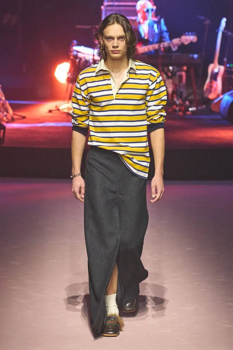 Начинаем новый год модными новинками. Мужская неделя в Милане дала старт месяцу показов и обновлений. Собрали всё самое горячее с итальянских подиумов: Gucci без Алессандро Микеле, дебют Марко де Винченцо в Etro, коллекции Prada и Zegna Gucci Только ленивые не высказались об уходе Алессандро Микеле из бренда. Вокруг собралось слишком много сожалений и слез. Советуем вспомнить, что мода — это поле экспериментов и для Gucci наступает новый этап. Про коллекцию: в бренде отказались от ретро-эстетики, ярких цветов и создали линию, в которой появилось много базовых моделей. Однако назвать линейку скучной сложно: в мужской гардероб перекочевали разные тренды сезона — от юбок макси до бомберов и шерстяных гетр.