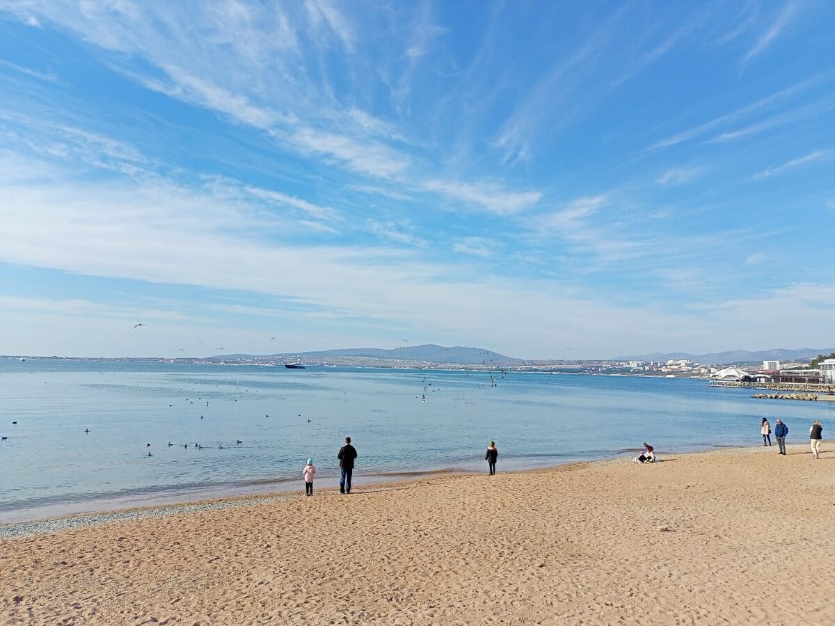 Вчера выдался отличный денёк для прогулок, температура воздуха прогрелась до 16 градусов, безветренно, солнышко грело и мы всей семьёй пошли гулять на набережную к морю. Людей гуляло очень много. Мы кушали мороженное и наслаждались весенней погодой. Новогоднее настроение в Геленджике продолжается, ёлку до сих пор не разобрали. 🌲 Людей по набережной катает сказочный паровозик с музыкой. Чаёк на море очень много, летают стаями, люди их кормят. Что меня очень радует, так это то, что у моря появляется всё больше и больше бесплатных мест для отдыха - пуфики, лавочки, столы. Раньше было немного лавочек на набережной и всё, не где было просто присесть отдохнуть, всё было занято. Мы брали одеяло и сидели на берегу. Сейчас выбор стал большим, лавочки, пуфики установили прям на пляже, люди сидят на солнышке и читают книги, наслаждаются шумом моря, криком чаек.