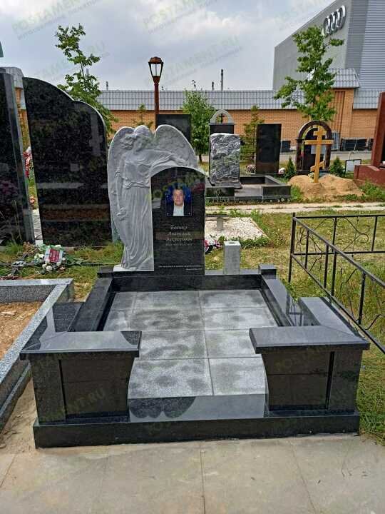 Комплекс с ангелом в полный рост, цоколь с угловыми скамейками