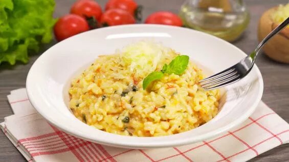 Ризотто, существует множество рецептов приготовления этого знаменитого блюда. У каждой итальянской хозяйки есть свои секреты для ризотто. Однако при приготовлении настоящего ризотто необходимо соблюдать основные правила. В ризотто используется особый рис, чаще всего это рис Арборио. Должны быть обязательно холодными сливочное масло и сыр, желательно пармезан. Бульон нужно вливать постепенно, всякий раз, как только очередная порция бульона впитается в рис. В процессе, ризотто нужно постоянно помешивать, приготовление требует немного терпения, но уже через 20- 25 минут восхитительное и элегантное блюдо появится на вашем столе. Ризотто с помидорами идеально подходит для семейного обеда или ужина. Время приготовления: 35 минут Количество порций: 4 Калорийность: 125 kCal Ингредиенты Как приготовить Ризотто с помидорами