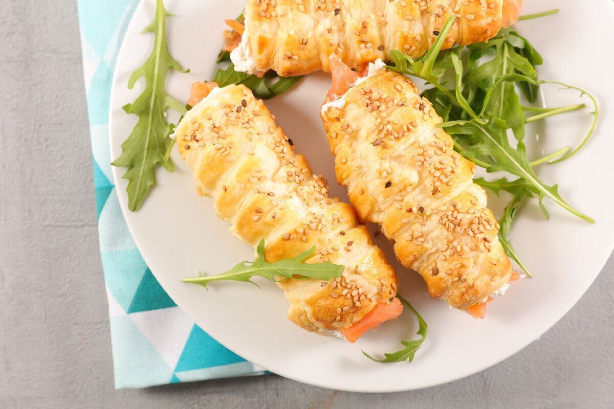 Слоеные рулетики с красной рыбой считаются прекрасной закуской к праздничному столу. Они отличаются небольшими размерами. Поэтому их удобно кушать. Такая закуска подойдет не только для традиционного праздничного стола, она будет уместна и для фуршетов. Преимуществом слоеных рулетиков считается то, что приготовить их можно заранее. Что идеально в праздничные дни! Основа из слоеного теста получается нежной и хрустящей. Само тесто можно приготовить самостоятельно или приобрести в любом супермаркете. В последнем случае удастся значительно сэкономить время на приготовление закуски. Для начинки можно использовать любую красную рыбу. Отлично подойдут жирные виды, такие как форель, лосось, семга. С рыбой отлично сочетаются мягкие сыры, а также зелень. Их можно включать в состав начинки. Простой рецепт слоеных рулетиков с красной рыбой Сытная, вкусная и полезная закуска – именно так можно сказать о рулетиках с красной рыбой. Филе лососевых рыб богато полиненасыщенными жирными кислотами, витамин