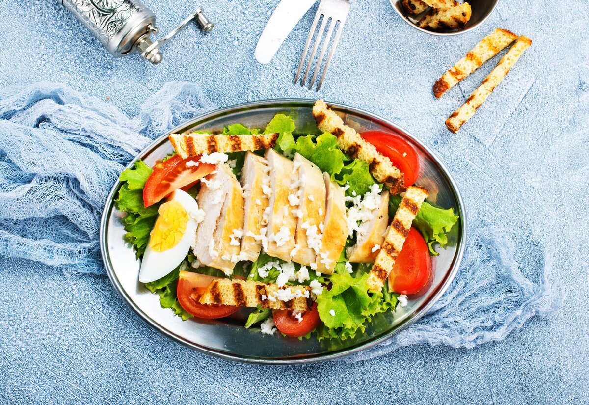 В классическом Цезаре достаточно калорийной считается заправка. Поэтому ее можно заменить на традиционный греческий йогурт. Наиболее доступным вариантом салата считается блюдо на основе куриного филе. Во-первых, мясо курицы отличается доступной ценой. Во-вторых, оно имеет небольшую калорийность, но большое количество питательных веществ. Это все верно, если использовать грудку. Но если рассматривать именно правильное питание, то мясо бедер и других частей в нем совсем не используется!