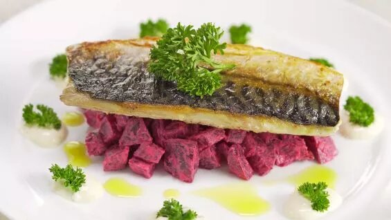 Очень вкусно, эффектно и по настоящему празднично! Приготовьте жареную скумбрию на аппетитной подушке из свеклы со сметанном соусом и хреном. Для приготовления этого блюда вам понадобится буквально полчаса, а дальше, принимайте восторженные отзывы гостей и родных! И не пугайтесь, если кажется, что вам не под силу сделать настоящее филе скумбрии. Это просто, смотрите рецепт. Время приготовления: 35 минут Количество порций: 4 Калорийность: 198 kCal Ингредиенты Как приготовить жареную скумбрию