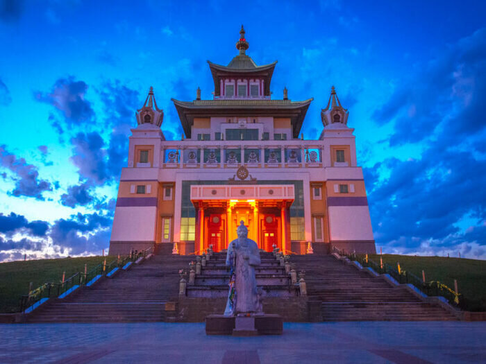 Золотая обитель Будды Шакьямуни — значимый буддийский храм в Европе и Республике Калмыкия, величественное и светлое место, доминанта всей Калмыкии и Элисты, расположенная в самом ее сердце и которую видно из каждого уголка города. Раньше здесь был завод ЖБИ, но по благословению буддийского лидера Его Святейшества Далай-ламы XIV, приезжавшего в Элисту (город контрастов) в ноябре 2004 г., возвели потрясающий буддийский храм. Перед отлетом из Элисты в Индию Его Святейшество Далай-лама освятил место, на котором должен был строиться будущий хурул. Золотую обитель Будды Шакьямуни возвели за 9 месяцев по проекту С. Курнеева, В. Гиляндикова и Л. Амнинова. По центру зала находится огромная золотая статуя Будды Шакьямуни, покрытая сусальным золотом, авторами которой были калмыцкие художники под руководством заслуженного художника-скульптора России Владимира Васькина. В великолепном здании хурула (56 м в высоту), освященном 27 декабря 2005 года, установлена крупнейшая в стране и Европе статуя Буд