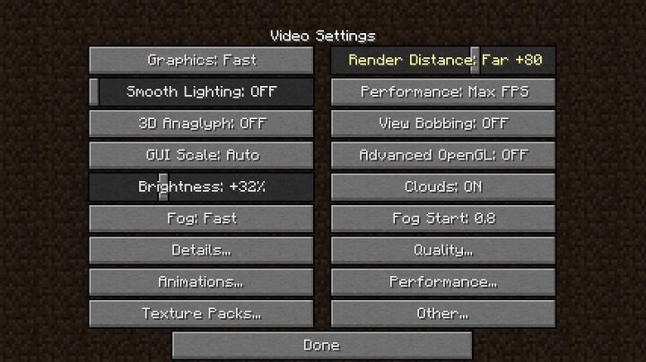 Хотя OptiFine позволяет увеличить частоту кадров, установка всех параметров на максимум (сглаживание, детализация теней, диапазон прорисовки, динамическое освещение) требует довольно мощного ПК. Если у вас нет такой машины, вам лучше заинтересоваться модом Fabulously Optimized (1.19.2), который значительно увеличит частоту кадров игры на старом железе.