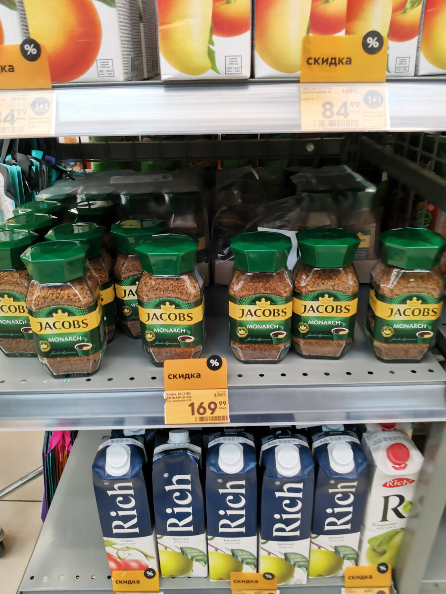 95 граммовая баночка растворимого кофе Jacobs Monarch подорожала, к сожалению, за 2 года весьма сильно.