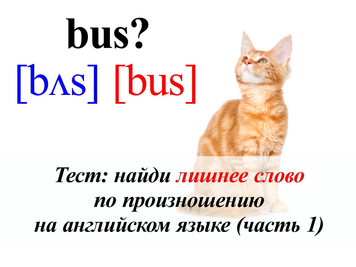 Здравствуйте, уважаемые читатели! На связи снова English Cats! Если быть честными, то правильное произношение слов на английском языке – это еще та проблема. Каких только производных от английских слов можно наслушаться от учеников и просто людей, изучающих английский язык. То бедный автобус становится "бус", то чай – "тиа", и это еще цветочки. Сегодня мы представляем вашему внимаю тест, который как раз и проверит то, как хорошо вы разбираетесь в произношении, и сможете ли вы найти так скажем "белую ворону" по произношению среди других слов. Тест состоит из 10 вопросов, в каждом из которых только одно слово является лишним. Не будем вас долго задерживать! Поехали! Надеемся, что вас порадовал ваш результат! Спасибо, что были с нами! Не забывайте ставить лайки и подписываться на канал! А еще обязательно пишите нам, какие странные произношения слов вы слышали, и в каких ошибались сами. Советуем вам также пройти тесты из нашей подборки, чтобы проверить свои знания и по другим темам: #en