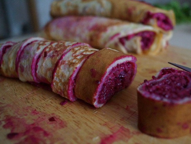 5. Начинкой смазать блин, сложить треугольником или трубочкой.
