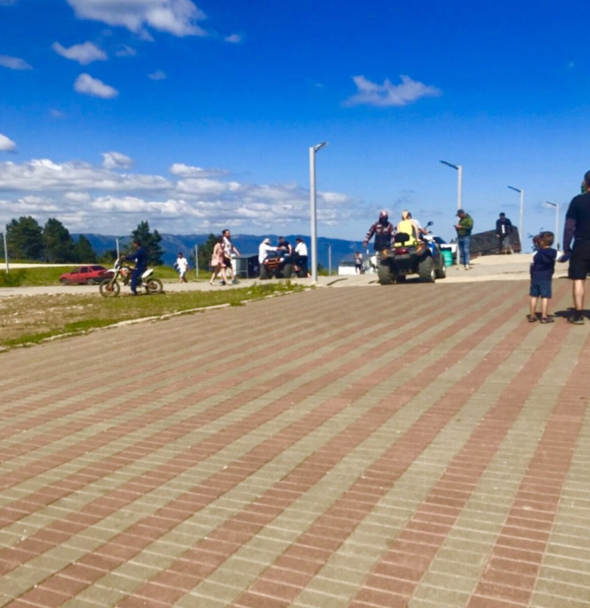 В прошлом году мы поехали в Крым на машине, поэтому были не ограничены в своих передвижениях и на Ай-Петри приехали также на машине. Во время подъема на Ай-Петри постоянные повороты горной дороги немного скрашивают места, которыми можно полюбоваться Чтобы подняться к Зубцам Ай-Петри нужно подъехать к смотровой площадке, от которой и нужно будет подниматься наверх Но здесь есть небольшое препятствие в виде небольшой деревушки уже практически на самом верху, чуть не доезжая до смотровой площадки. Вернее даже не сама деревушка, а мужчины-зазывалы, которые путают туристов, говоря о том, что дальше на машине не проедешь и предлагая оставить машину здесь Если у вас нет цели идти до Ай-Петри пешком (а это довольно трудный путь, после которого на Зубцы Ай-Петри идти уже не захочешь) или ехать на квадроцикле, который вам предложат не бесплатно, разумеется, стоит игнорировать этих молодцов и спокойно проезжать мимо них дальше. Ну вот мы поднялись на плато Ай-Петри, где спокойно и бесплатно можно
