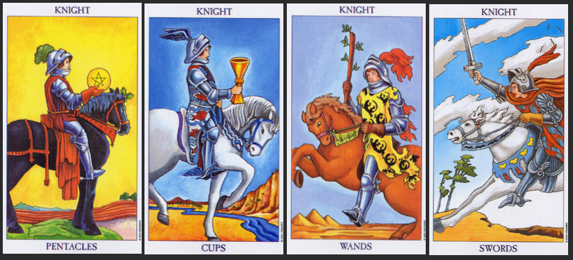 Здравствуйте! Продолжим разговор, в предыдущей статье мы поговорили про Пажей - как они характеризуют личность человека. Рыцарь - товарищ, у которого все горит, он наполнен задором, куражом, энтузиазмом, желанием. Они хотят показать людям и миру на что способны, чему научились. Им не терпится применить свои знания, они не могут ждать и терпеть, они заряжены энергией масти настолько, что остальное, что-то кроме, для них остается недосягаемым. Рыцарь пентаклей очень ответственный герой, за все берется с умом, это про него "сто раз отмерь, один раз отрежь". Практичен, любит и ценит труд, всего добивается исключительно своим трудом, он понимает, что только приложение личных усилий даст возможность получить необходимый результат. Этот Рыцарь заточен на мирское, бытовое - деньги, имущество, работа и карьера, обычные земные дела. Он полагает, что это все - его фундамент, основа его спокойствия и гармонии. Лиши его этого, он будет несчастен и разбит. Рыцарь кубков - человек настроения. Он мож