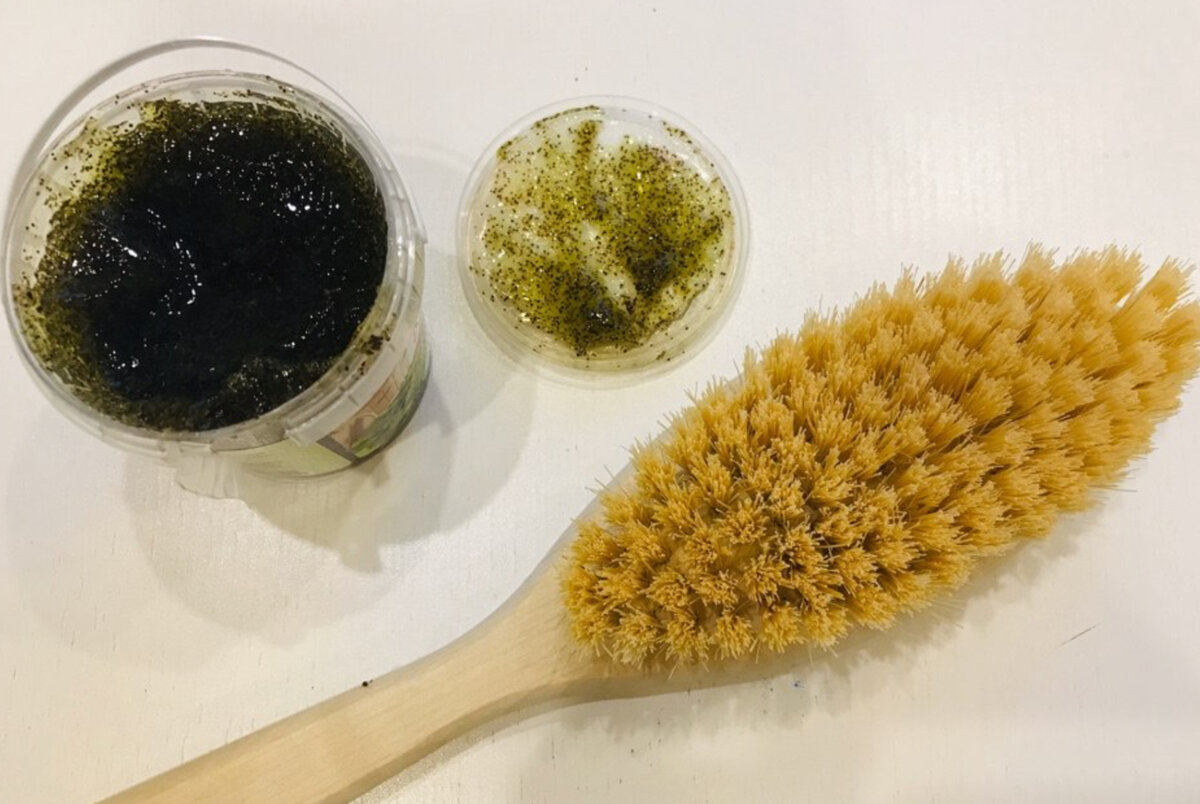 Причем сначала у меня появилась щетка и различные средства, типа скрабиков. Ну конечно, поначалу это был брашинг, но совсем не драй. Я массажировала проблемные места на теле с помощью щетки и с применением различных косметических средств при помощи воды. Хотя сказать честно, я и сейчас этим балуюсь...