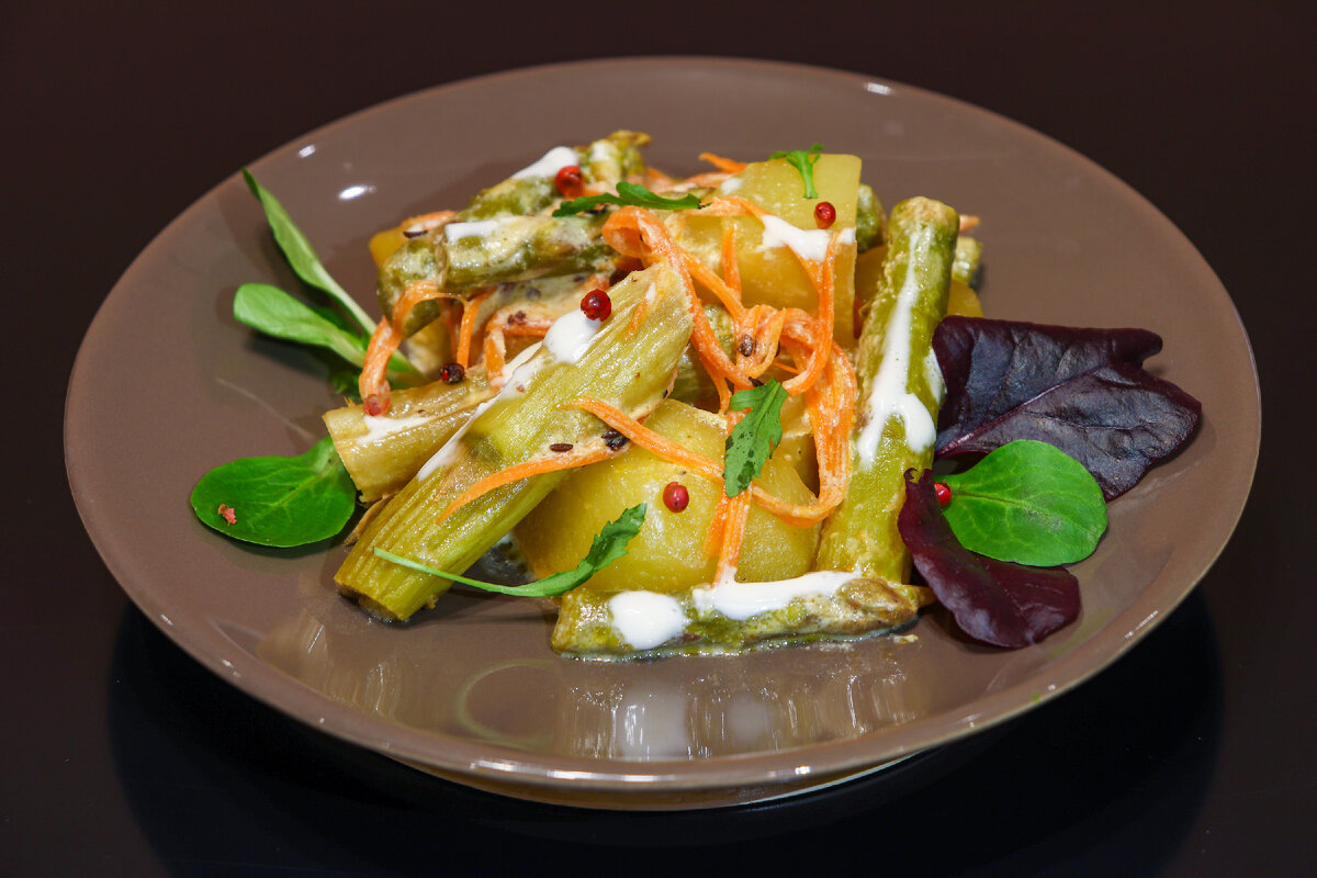 Картофель со спаржей в сливочно-чесночном соусе