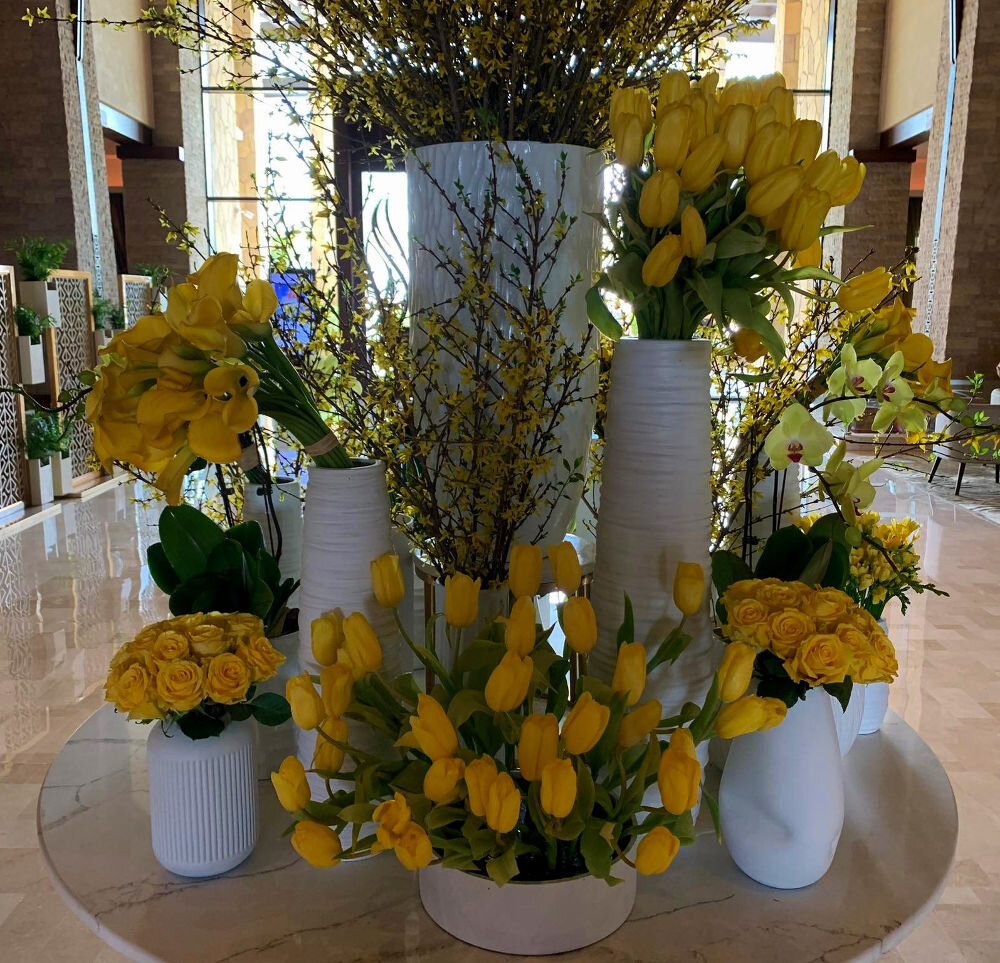 В холле отеля Sofitel Dubai The Palm увидел такой прекрасный букет из желтых цветов. Ну как было не сфотографировать такую красоту. Флорист поработал на отлично.