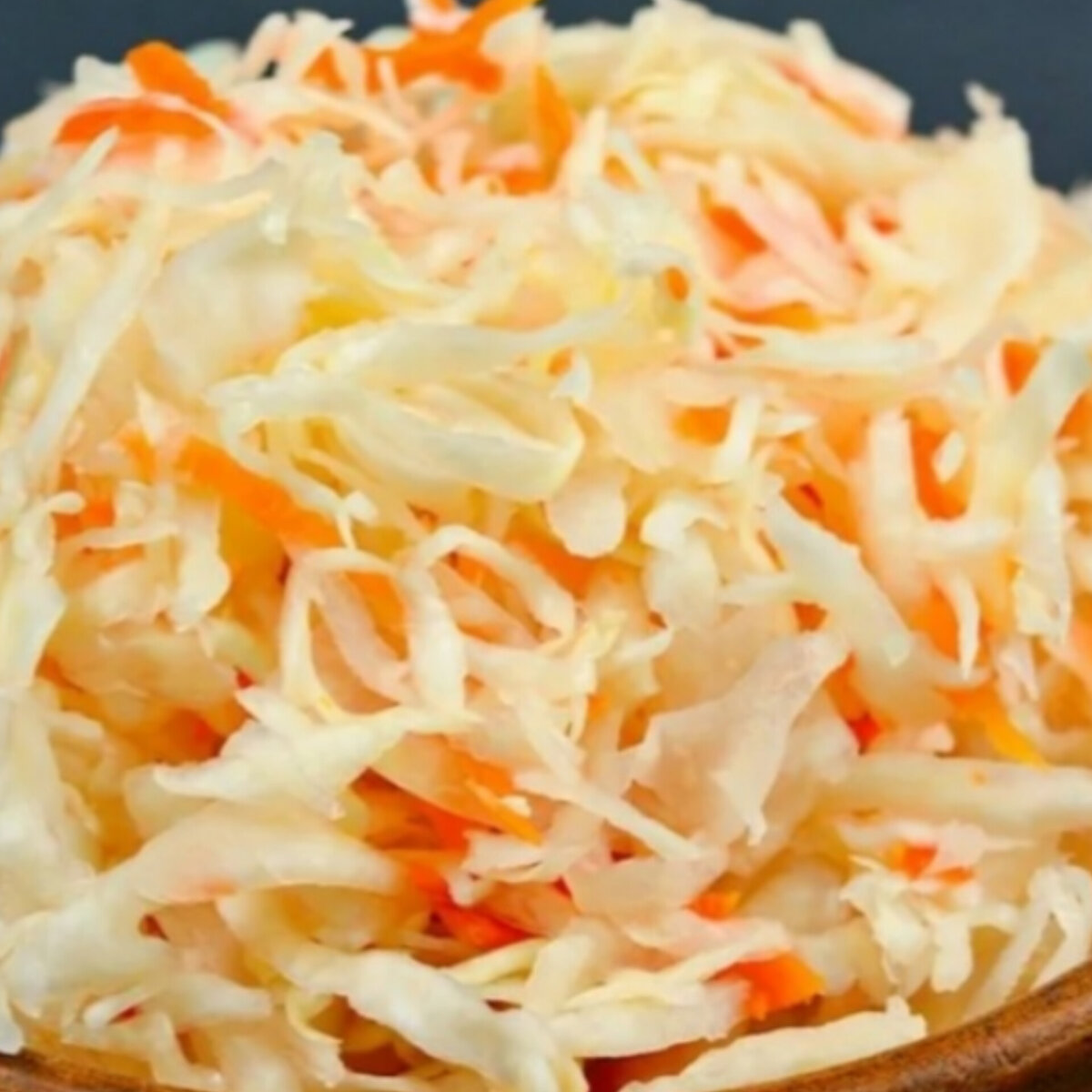 Капустка получится сочной и хрустящей!!!! Если полностью повторите рецепт, то капусточка получится просто ОГОНЬ (как говорят все наши покупатели)!!! Соль используем поваренную!!! Ингредиенты на 3-х литровую банку · Капуста белокочанная – 1.7 – 2.0 кг · Морковь – 2 средние (примерно 200 гр). · Соль · Сахар-песок · Вода Рецепт: Капусту нарезаем тонкой и длинной соломкой Натираем морковь на крупной терке Перемешиваем капусту с морковью и укладываем плотно в банку. Заливаем банку до самого верха холодной (сырой) водой и оставляем на 20 минут. Затем сливаем воду и добавляем в неё 1.5 столовые ложки соли (это примерно 1 литр воды), размешиваем в воде и обратно заливаем в банку. Банку прикрываем неплотно крышкой и ставим в сухое место на 2-3 дня (находится в тепле). Капусту необходимо раз в день прокалывать. На третьи сутки сливаем рассол и в него добавляем 2.5 столовые ложки сахара на 1 литр рассола, размешиваем тщательно и заливаем обратно в банку. После чего банку закрываем плотно крышк