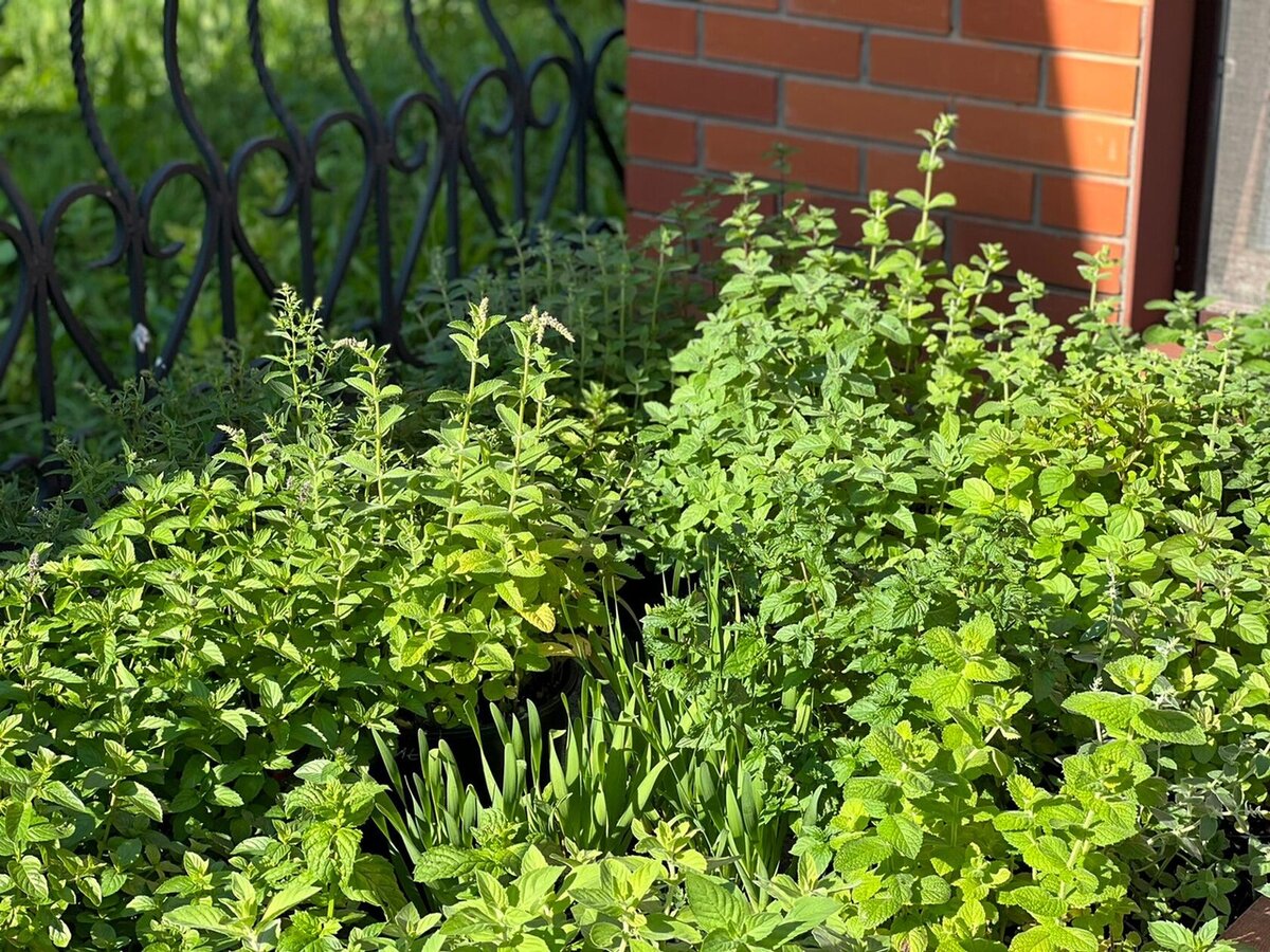 Так как сад у меня коллекционный, мят и других многолетников много, а место ограничено, высаживаю многолетники в контейнеры. В данном случае-контейнерная площадка. Снизу-бетонная основа, сверху стоят контейнеры. На зиму снизу прокладываю слой пенопласта, чтобы корни не промерзли, сверху укрываю двойным слоем лутрасила. Вариант второй-расположение контейнеров на земле. Сделали из досок бортики, подсыпали песка, проложили черное агроволокно. Если зимой много снега, лучше на зимовку контейнеры класть на бок, это предотвратит весеннее выпревание. Вариант третий-вкопать контейнеры в грунт. Желательно для этого использовать строительные емкости (продаются в строительных магазинах), или любую другую емкость, сделать в них много отверстий, проложить по дну контейнера 2 слоя лутрасила, чтобы мята не «пошла гулять», вкопать, оставив небольшой бортик снаружи (как ограничитель). Вкопанные контейнеры не укрываю ничем. Обрезку делаю весной. Вариант четвертый- мяты и другие многолетники расположены