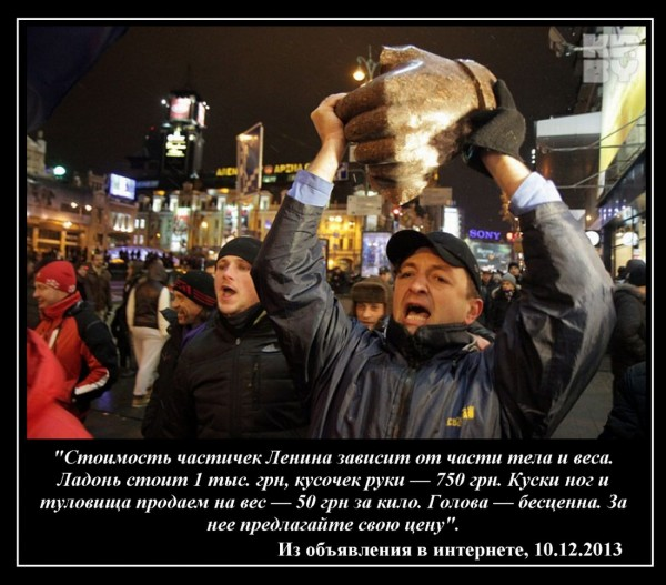Собственно говоря, коммерческий подход к «декоммунизации» и «ленинопаду» проявился с первого же поваленного во время «Евромайдана» памятника Ленину в Киеве 8 декабря 2013 года. Уже через день в интернете тогда появились объявления о торгов