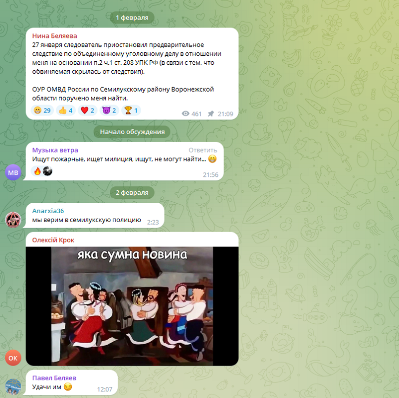 В телеграм-канале экстремистки Беляевой насмехаются над семилукской полицией
