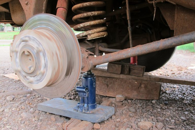 Съезд на обочину к придорожной мастерской. Небольшая площадка имеет уклон. Задний мост вывешивается на два домкрата. Сафарь сдвигается и ранит домкрат.