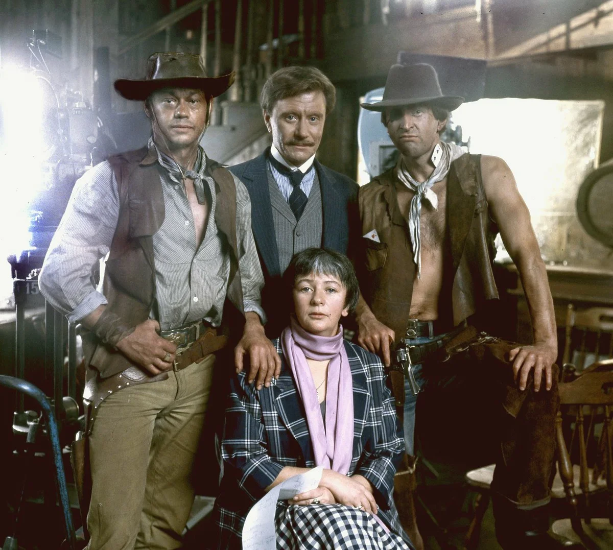 - В этом фильме каскадерам приходилось не только выполнять трюки, но и играть эпизодические роли. Они постоянно перевоплощались то в ков6оев, то в индейцев, а порой даже – в женщин. Например, Александр Жизневский сыграл ту самую старушку с клюкой, которая приходит к аптекарю за каплями, а затем лихо вскакивает в седло и уносится прочь.