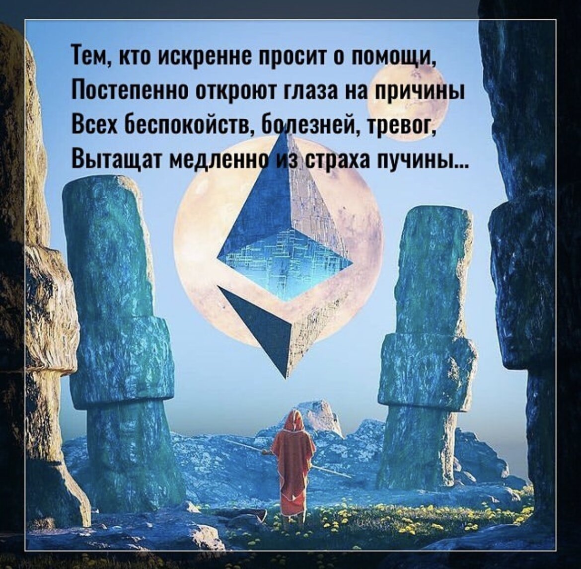 Тем, кто искренне просит о помощи, Постепенно откроют глаза на причины Всех беспокойств, болезней, тревог, Вытащат медленно из страха пучины. Кому уготована миссия важная, Но он долго на месте одном топтался, Из-за происков тёмных и разных преград, Чуть без всего на Земле не остался, Начнёт отмываться с каждым днём больше, Прольют на все тайны Души ещё свет, Теперь воплотившиеся здесь Ангелы Передадут людям Новый Завет. Чистка глобальная при переходе Не оставит совсем на Земле тёмных пятен, А тот, кто отмыться сам не захочет, Не избежит новых ран и ссадин. Каждый рассвет принесёт новый опыт, Открывать свою Душу только и успевай, Не сомневайся, что всё идёт к лучшему, Благодарить Небо не забывай!