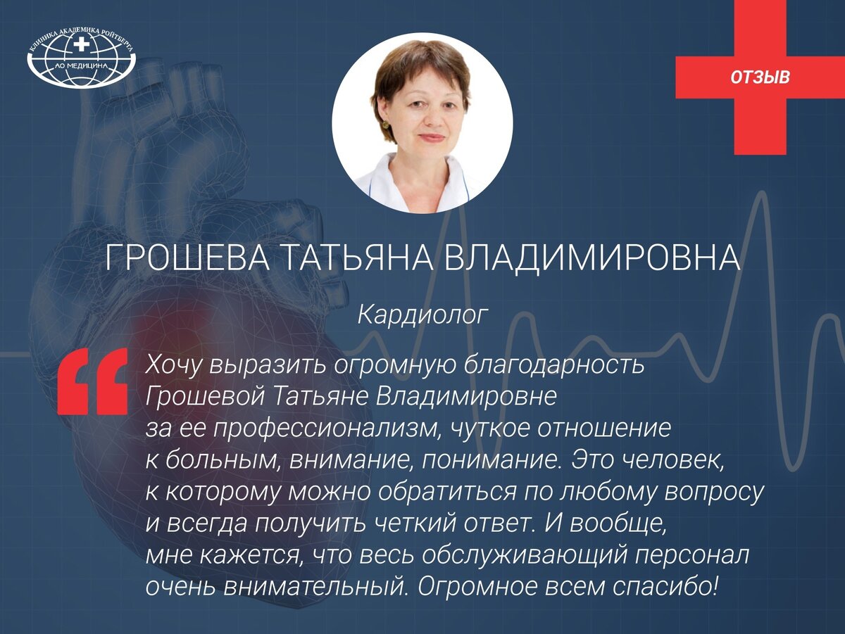 Обращайтесь к Грошевой Татьяне Владимировне - кардиологу АО «Медицина» (клиника академика Ройтберга), кандидату медицинских наук. Стаж 42 года.