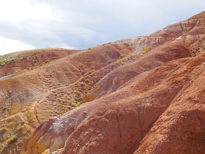 В Кош-Агачском районе республики Алтай находятся места, напоминающие красную планету. Именуют их Марс-1 и Марс-2. На представленных фото будет Марс-1. Дорога к нему лежит через село Чаган-Узун, расположенное близ реки Чуя. Зелень присутствует вблизи реки, чуть удалился от воды-голые холмы, покрытые редкой травой.