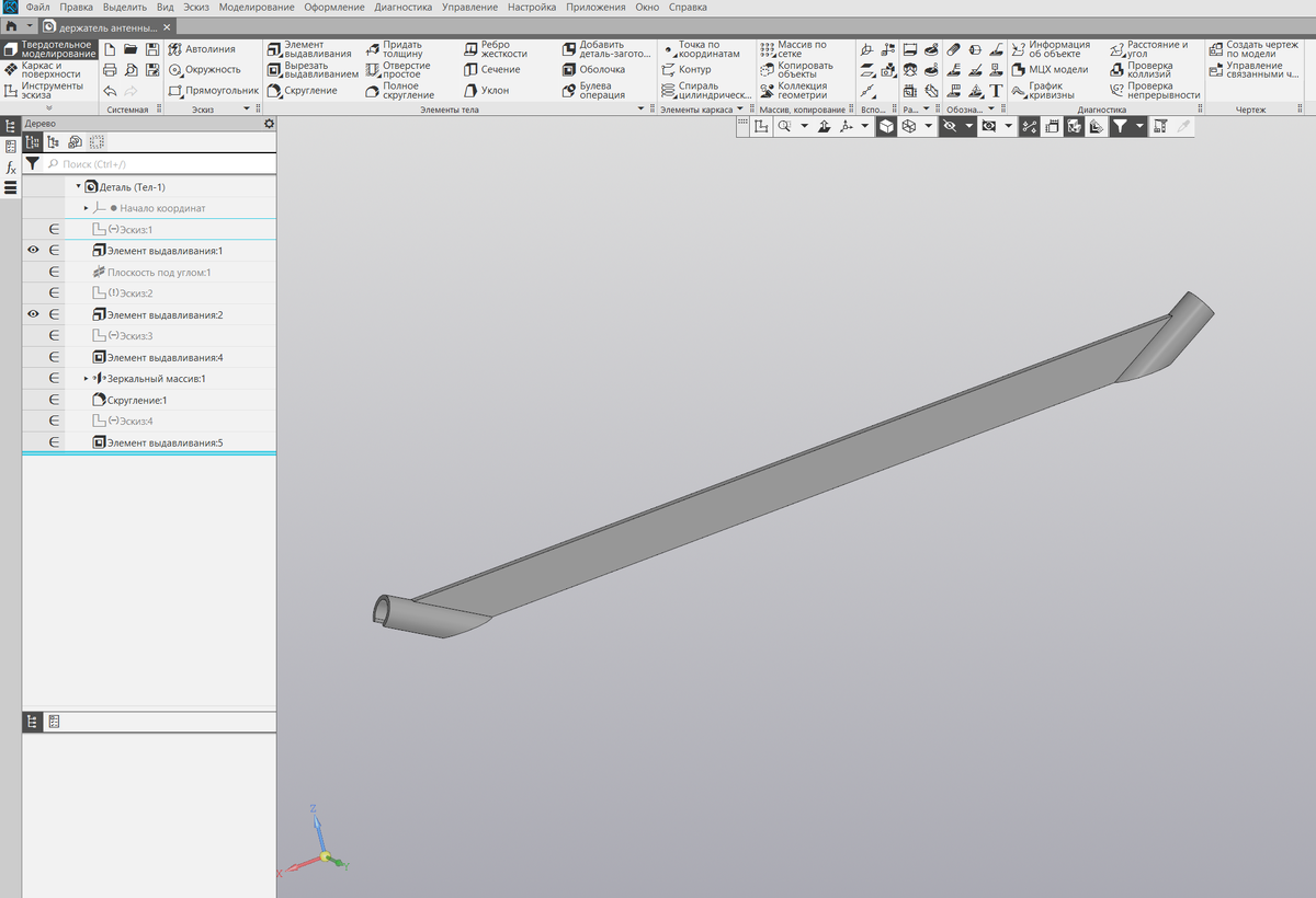 В программе Компас-3D начертил распорку 120 градусов для антенны RTL-SDR Dipole Antenna. Вот так выглядит распорка в программе: Распечатал на 3D принтере и вот как это выглядит уже на антенне: Такая конфигурация антенны нужна для приема сигнала с метеорологических спутников NOAA. Вот пример мозаики из снимков, которые я принял с этих спутников: Модель я выложил на сайт Thingiverse. Скачать модель распорки можно по этой ссылке https://www.thingiverse.com/thing:5833328 Сегодня попробую принять с помощью этой антенны переговоры космонавтов с МКС. Позже выложу видео, что у меня получилось.