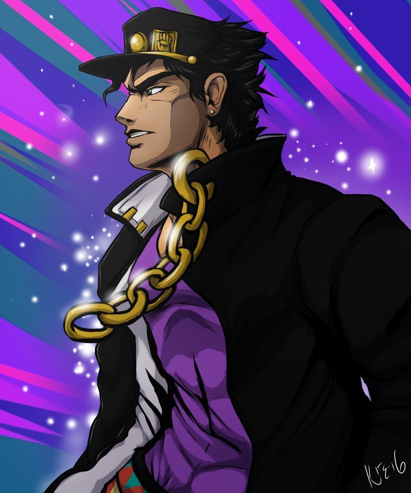 Джотаро по канону мускулистый мужчина ростом 195 см, которого другие персонажи часто называют привлекательным. У него чёрные волосы, постоянно сливающиеся с шапкой, сильная линия подбородка, жирные брови и зелёные глаза. Он также имеет небольшое сходство со своим прапрадедом, Джонатоном Джостером, и дедом, Джозефом Джостером в молодости. Наряд Джотаро меняется в каждой части ДжоДжо, в которой он появляется. Его визитной карточкой является кепка с козырьком и орнаментом, порванная сзади и сливающаяся с волосами, и пальто длиной примерно до середины бедра со стоячим воротником и цепями. Его наряд был создан под влиянием Babel llW, известной манги о мальчике в школьной форме, переживающем приключения в пустыне. Наряд Джотаро претерпел ряд значительных изменений с Крестоносцев, в дополнение к тому, что сам наряд претерпел несколько изменений во время Несокрушимого алмаза. В каждом из них присутствует его фирменное сочетание кепки с козырьком и плаща. Он носит брюки с широкими штанинами, а