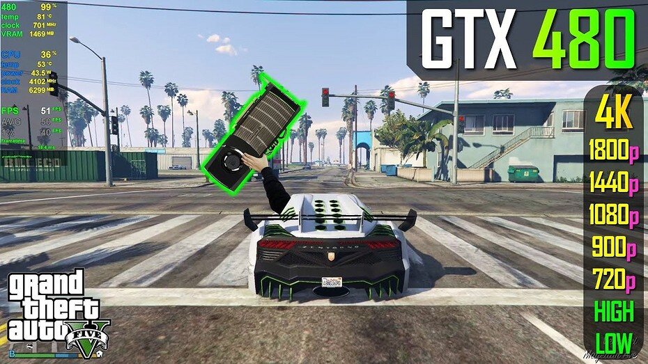 Эксперт выяснил, можно ли играть в GTA V с 13-летней видеокартой GeForce GTX 480 за 1500 рублей