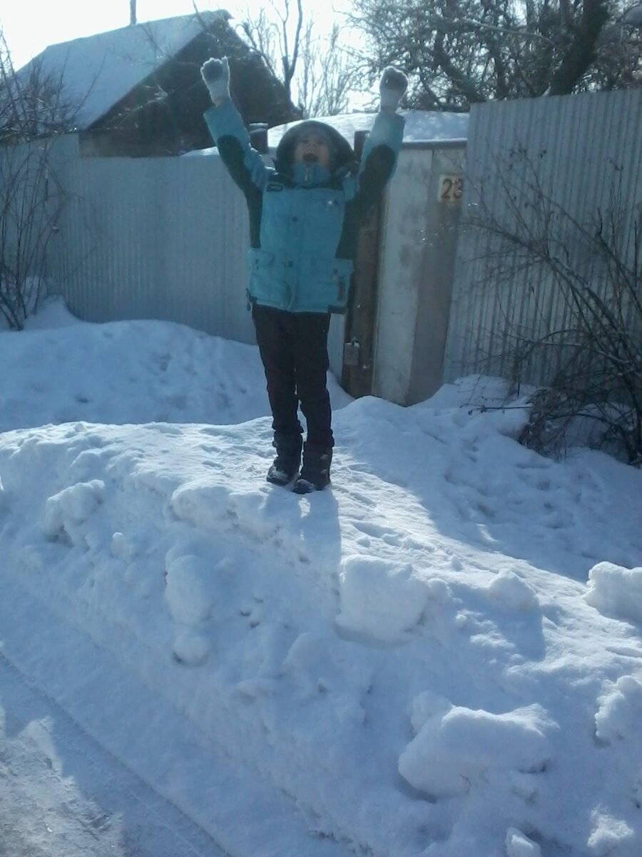 Делюсь с вами моим стихотворением, написала его в те дни когда ходила за внуком в школу , а потом мы вместе топали с ним домой.В тот год была снежная и морозная зима, сугробы были высокими и прочными.Внук забирался на них , а я его фотографировала.