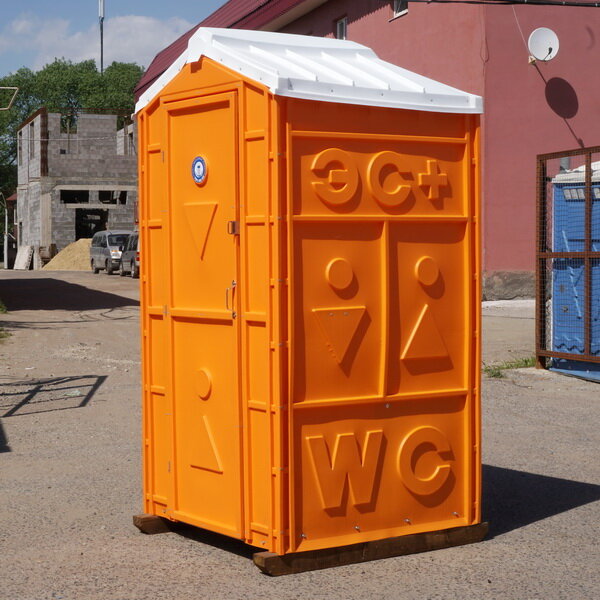 Дверь туалетной кабины закреплена на стальные петли. Она не провиснет со временем. Выбить дверную створку практически невозможно.