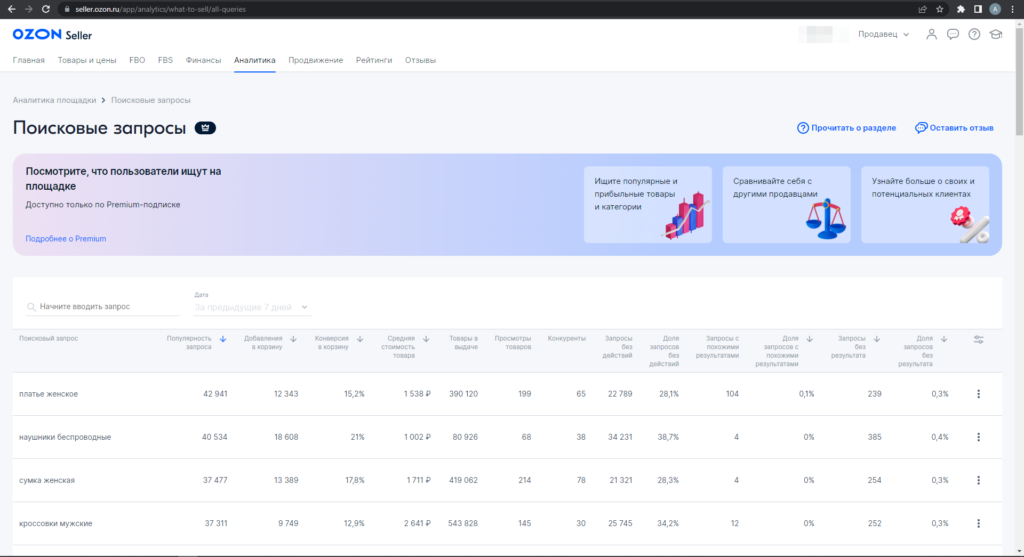 Плагин для поставщиков OZON открывающий статистику по "Поисковым запросам