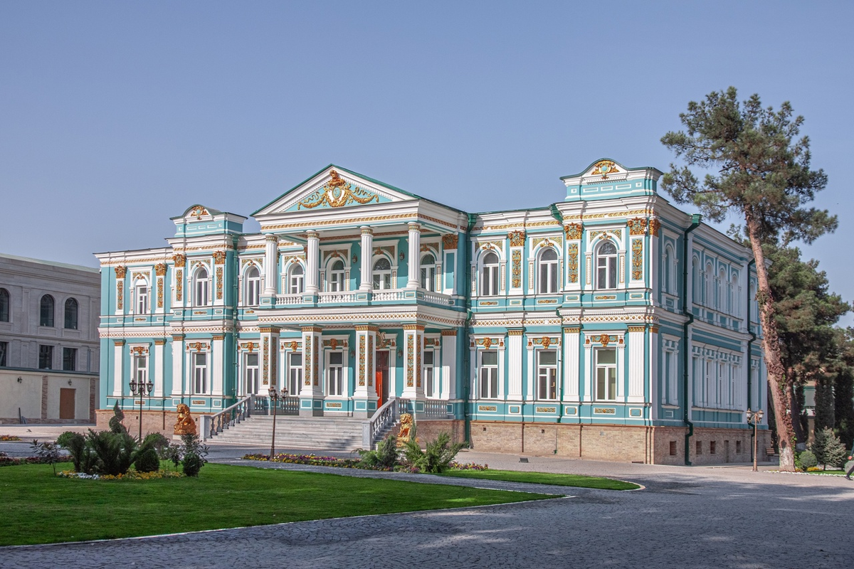 Когда Средняя Азия вошла в состав Российском империи, то в Самарканде, к югу от старого города, стали появляться русские кварталы. И речь не столько о том, что их населяли «имперцы». Они, понимаешь ли, тут понастроили зданий в своем стиле. В тот же период подтянулись и другие европейцы. Показываю, что от них осталось. Шикарное здание русско-китайского банка сегодня занимает ректорат СамГУ. В перестроечные времена купеческую постройку закрыли другим университетским корпусом. Но в наши дни, что удивительно, местные власти демонтировали часть крыла, дабы всем была видна такая красота. Центральную почту столетнего возраста тоже недавно порывались снести, а потом передумали и отреставрировали. До сих пор она используется по назначению, сейчас как филиал «Узбекистон почтаси». Словно мини-замки выглядят здания бывшего Государственного российского банка и первой публичной библиотеки. Оба объекта тоже так и эксплуатируются в изначальных ролях. Забавно видеть над входом последнего обрамленную на