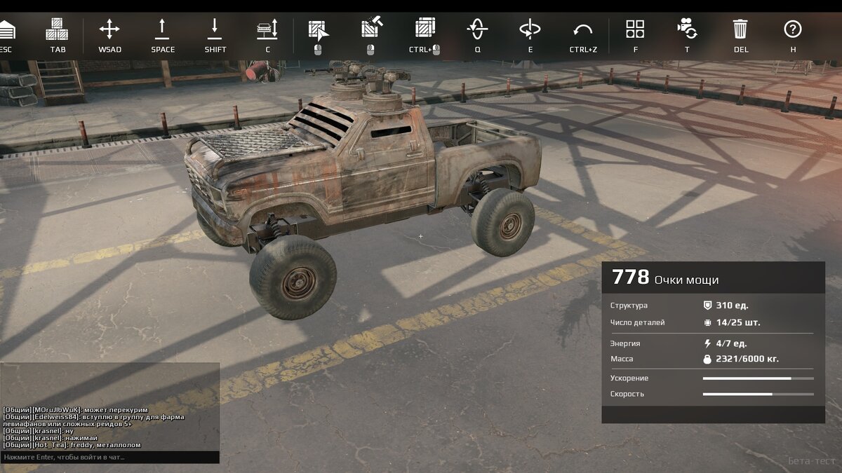 После запуска Crossout каждого новичка ждет стандартный пикап с двумя обычными пулеметами. Увидеть машину можно на скриншоте ниже.