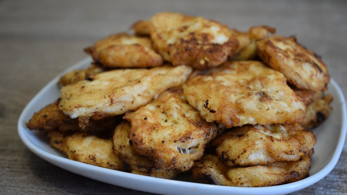 Ингредиенты: Куриное филе – 500 гр Кефир – 100 мл Яйцо – 3 шт Чеснок – 1 зубчик Соль - ½ ч.л. Паприка – ½ ч.л. Масло растительное Рецепт приготовления: Куриное филе 500 грамм режем на медальоны. немного отбиваем их ножом Кладем филе в миску, заливаем кефиром 100 мл, добавим три куриных желтка, соль и паприку по 1/2 ч.л. и чеснок через пресс. Перемешиваем и оставляем на 20 минут мариноваться. Белок от трех куриных яиц взбиваем блендером в течении 2-х минут, обязательно добавим соль в белок. Кусочки филе окунаем в белок, каждый кусочек. Жарим кусочки филе на растительном масле, на среднем огне по 1.5 минуты с каждой стороны. Подаем такую закуску со свежими овощами и хрустящим хлебом. Приятного апетита! Кстати, я ранее уже делился этим рецептом на своём канале. в формате видео. Переходите и смотрите. Так же рекомендую посмотреть: Беру куриную грудку и взбиваю с молоком: больше в магазине сосиски не покупаю, а делаю их сам (делюсь рецептом) Ингредиенты: