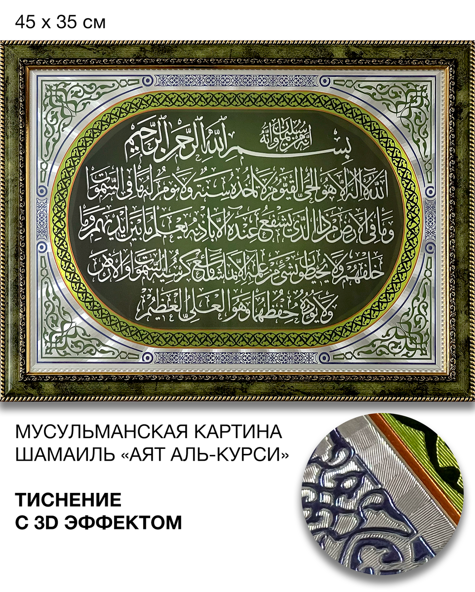 Мусульманская картина "Аят аль-Курси" 45x35см, с 3D эффектом Islam 145653654 купить в интернет-магазине Wildberries