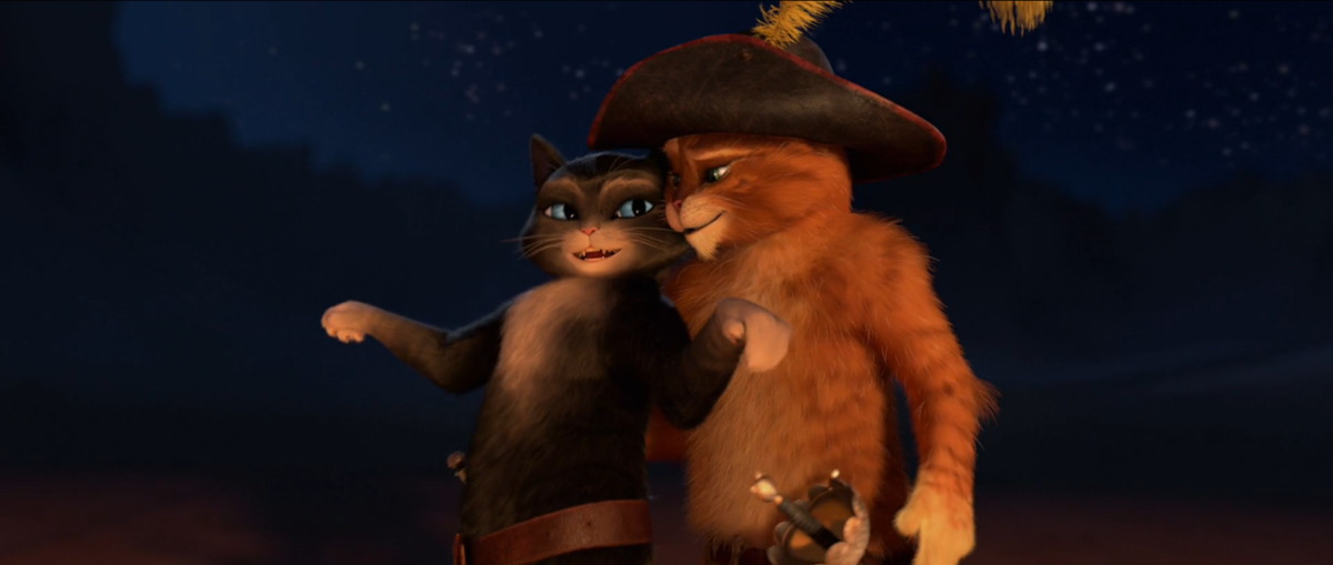 Перед тем, как глянуть вторую часть истории о рыжем сердцееде, я решила вспомнить первую. Что в ней вышло хорошо, а что зря не доработали? БЕЗ СПОЙЛЕРОВ: +- Сюжет. Этот мультфильм приквел к основной истории про Шрека. А потому тут вам и детство Кота, и его личная трагедия. История закручивается, когда Шалтай-Болтай, бывший друг главного героя и проводник к преступной дорожке, предлагает пушистому донжуану исполнить их общую мечту: вырастить бобовый стебель и обогатиться. И вот начинается охота сначала за бобами, а потом и за утей золотыми яйцами. Задумка с включением в сюжет героев из других сказок мне понравилась, как и ненавязчивый (да, такое бывает) испанский колорит, который ощущался по большей части, благодаря Коту. Смотреть было довольно интересно, но в глаза порой бросались и логические дыры, после кульминации особенно, и киноляпы, а их я редко замечаю. Много экшена, который, как узнаётся в конце, не то что бы был нужен. Также из-за довольно короткого хронометража события стрем