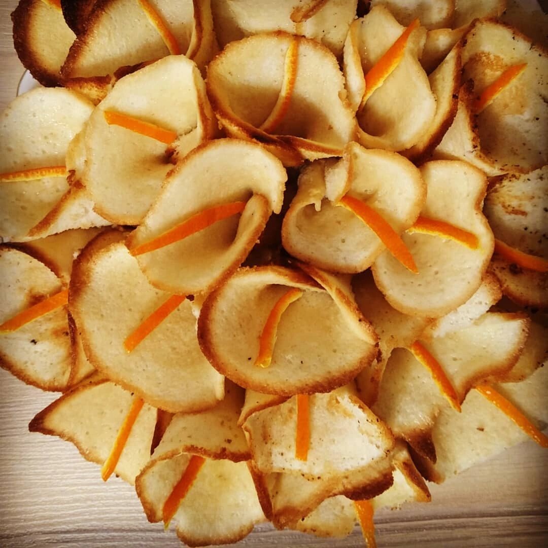 Вспомнился мне замечательный рецепт печенья "Каллы", который записан в моей записной книге ещё со школьных времен. Это необычайно вкусное, легкое в приготовлении печенье,которое сегодня приготовила моя доченька.Красиво и эффектно будет смотреться такое печенье на праздничном столе! Советую попробовать и Вам, порадуйте своих близких и гостей! Наи понадобится: яйца - 3 шт.; мука - 1 стакан; сахар - 1 стакан (неполный); корочки апельсина - для украшения; масло сливочное - для смазывания противня. Яйца с сахаром взбить миксером до образования пышной светлой массы. Продолжая взбивать, добавлять понемногу просеянную муку. Тесто должно получиться консистенции жидкой сметаны. Духовку разогреть до 180-200 градусов вместе с противнем. Горячий противень или форму смазать сливочным маслом (можно маргарином). Чайной ложкой (быстро) выкладывать тесто в виде лепешек на расстоянии 3-4 см друг от друга. Поместить в горячую духовку. Выпекать 3-4 минуты (как только края чуть подрумянились - готово
