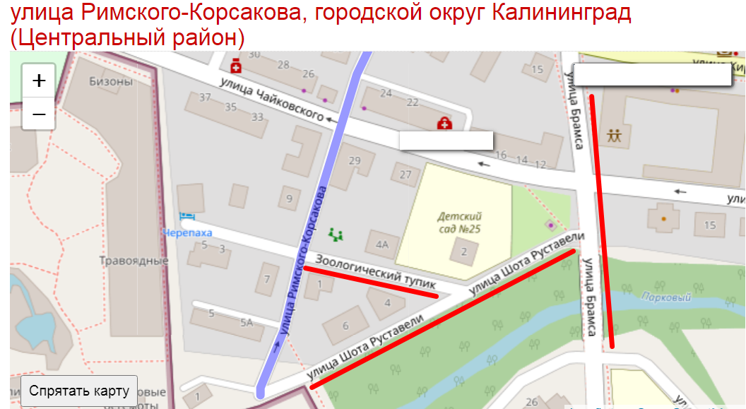 Ограничимся сегодня улицами Римского-Корсакова и Зоологический тупик. Ниже на карте видно, что входят они в своеобразный треугольник. Думаю, что по ул. Брамса и Чайковского нам еще предстоит погулять в будущем, а пока... Пока немного слов о самих улочках, их истории:
