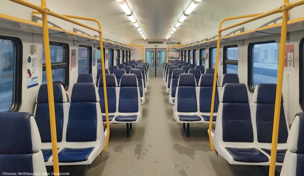 ЭД2Т-0018 по Московскому узлу помотало: Перерва, Апрелевка, Железнодорожная, Домодедово. Старушке уже двадцать семь лет... поезда - не люди, живут меньше. Оттого у неё в одном вагоне - сауна, в другом - бодрящая прохлада. Мы выбрали второй :)
